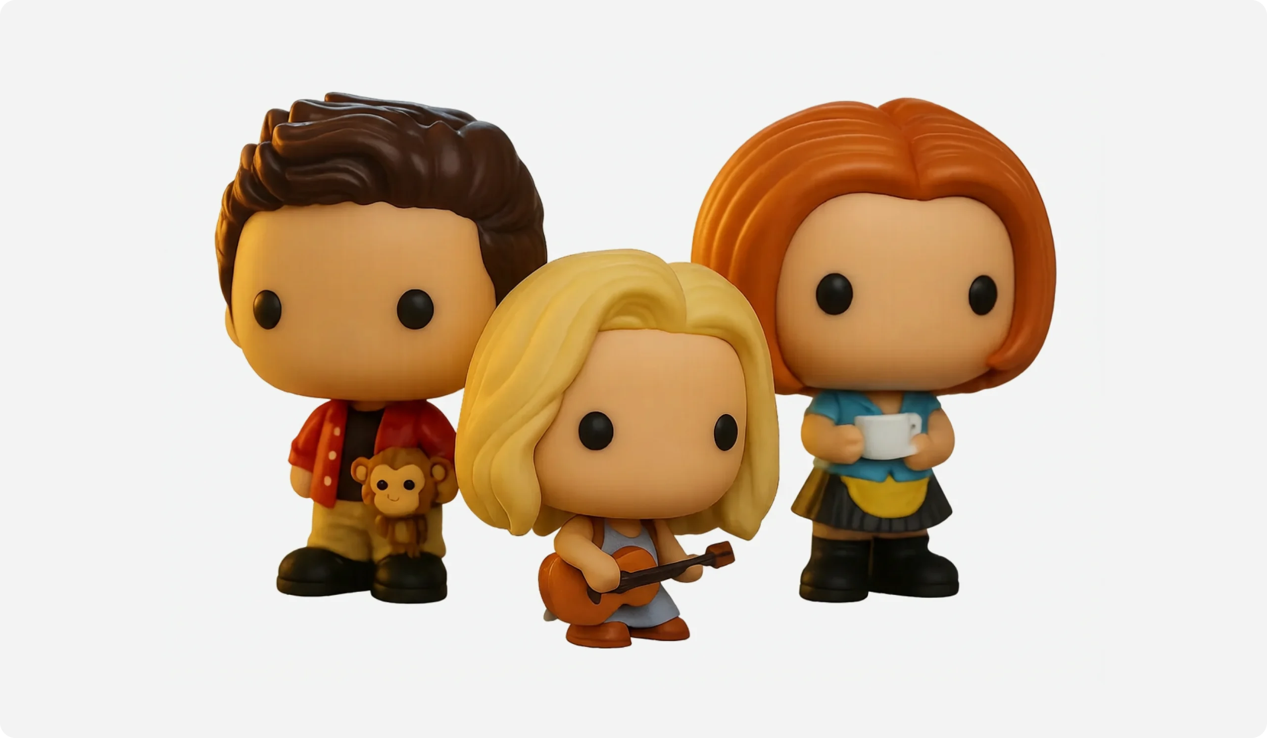 Toy Arts colecionáveis inspirados em Friends, criados como itens de desejo para fãs adultos e colecionadores.
